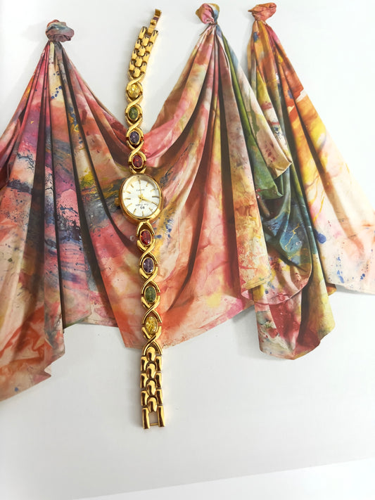 Vintage-Inspired Gold Bracelet Watch with colored stones