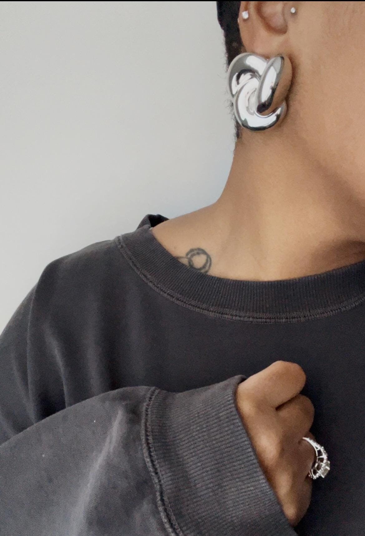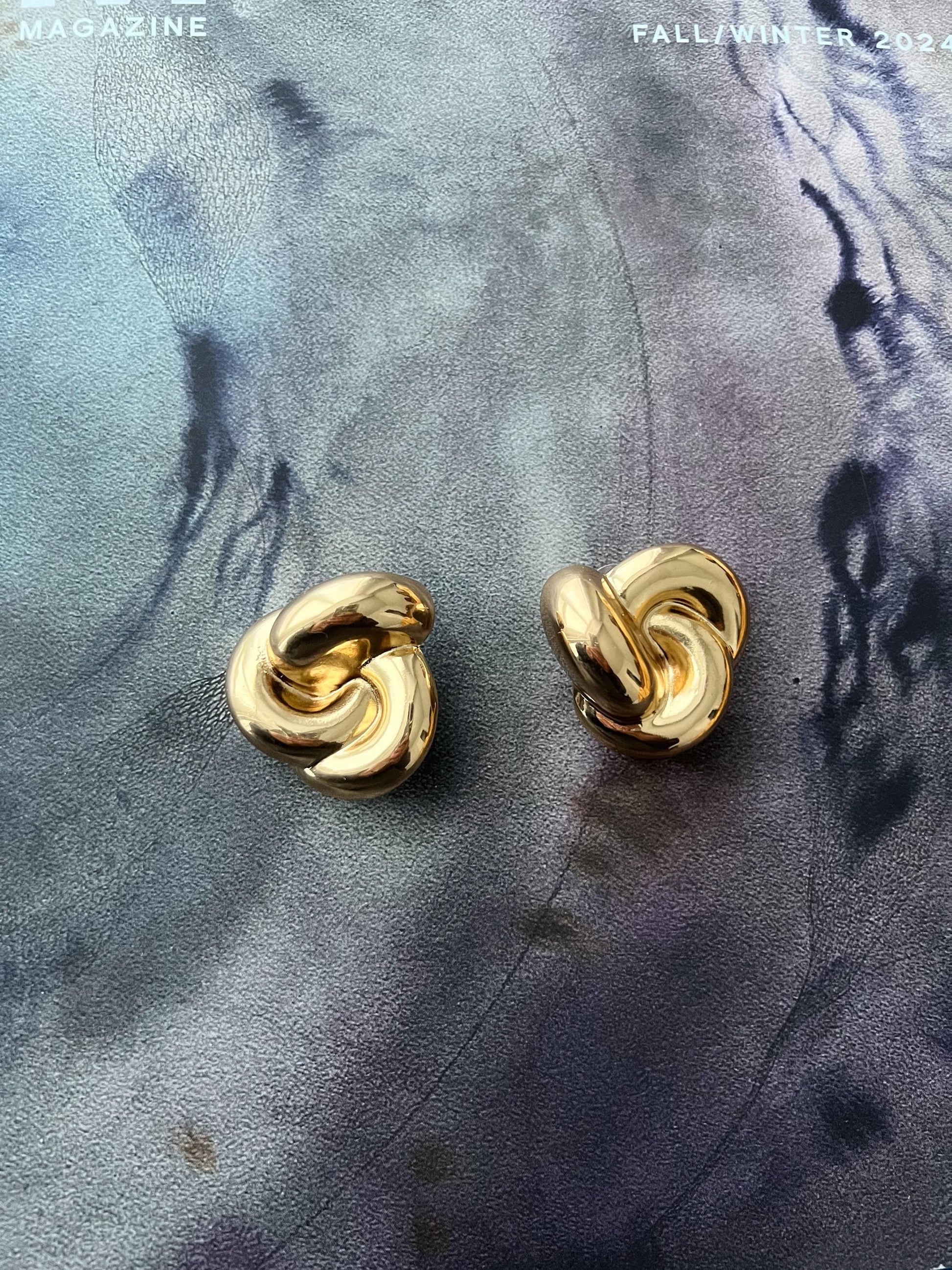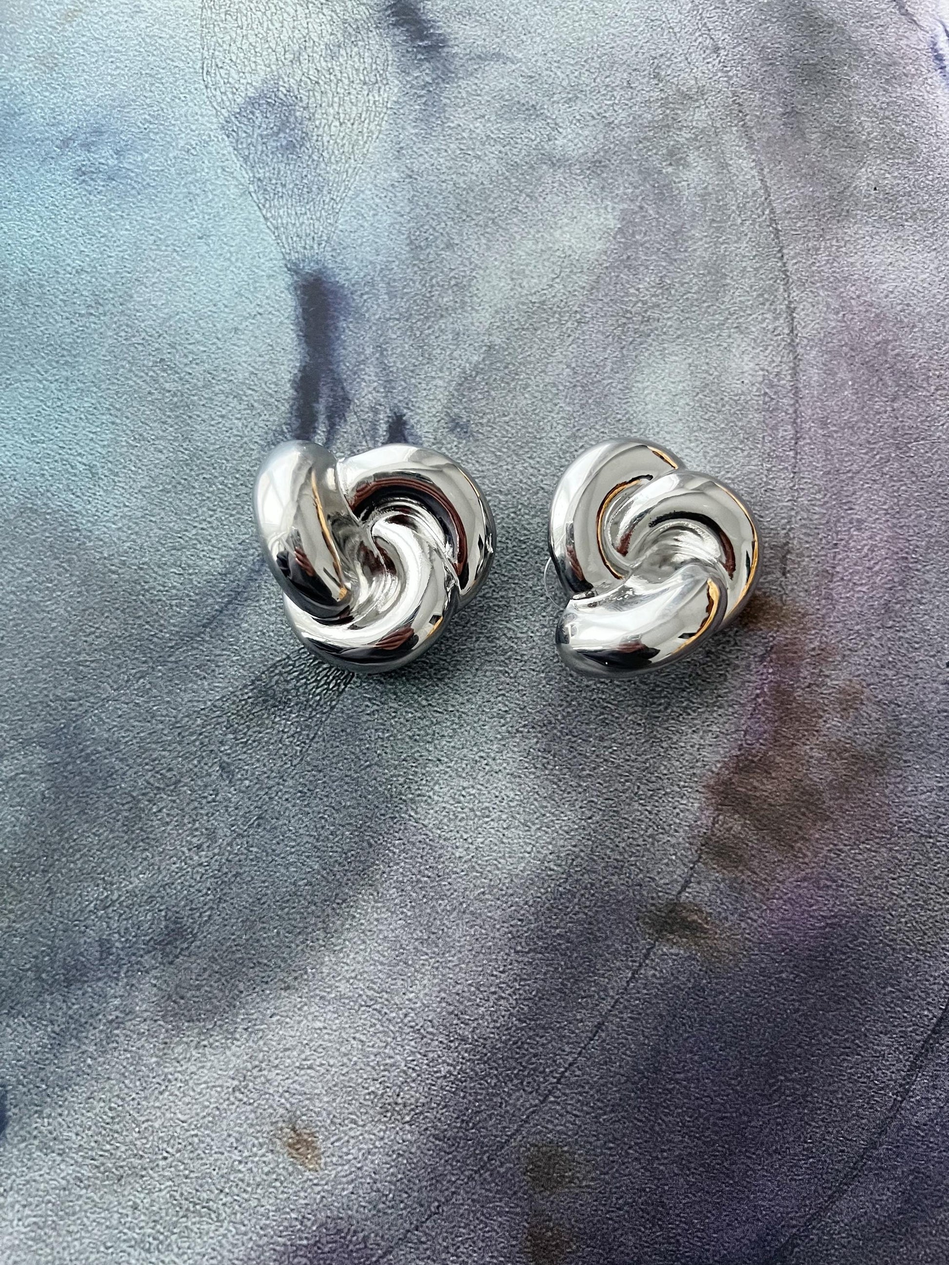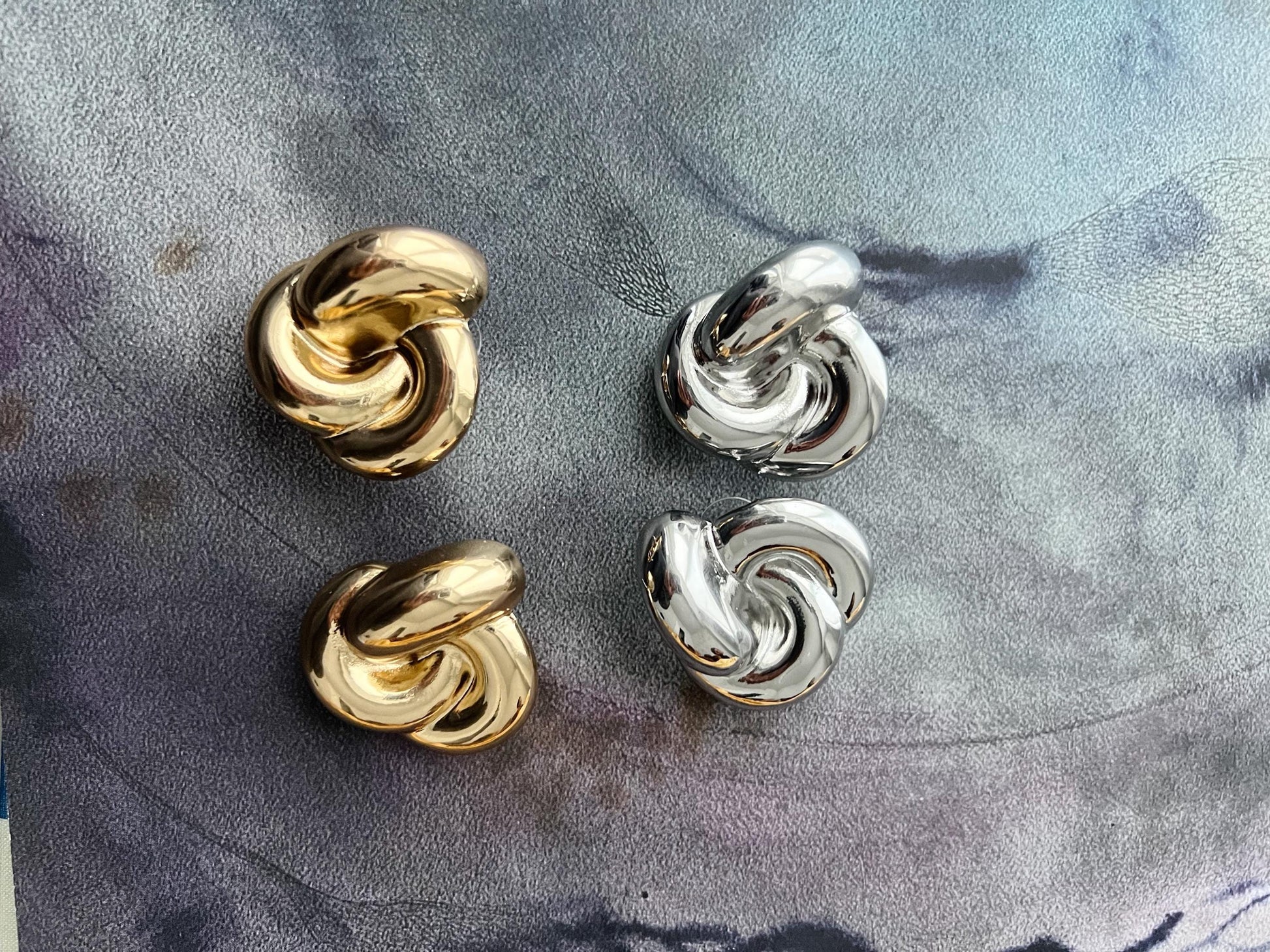 Turn heads with these sculptural twist knot earrings in polished silver and gold. A seamless blend of modern minimalism and bold geometry, these beauties are made to catch the light—and everyone's attention. Whether you're pairing them with a sleek blazer or your favorite vintage tee, these stunners add an effortlessly cool look to any outfit.